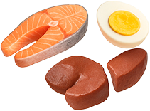 Pollo, pavita, pescado, cerdo, cuy, huevo, hígado, etc.