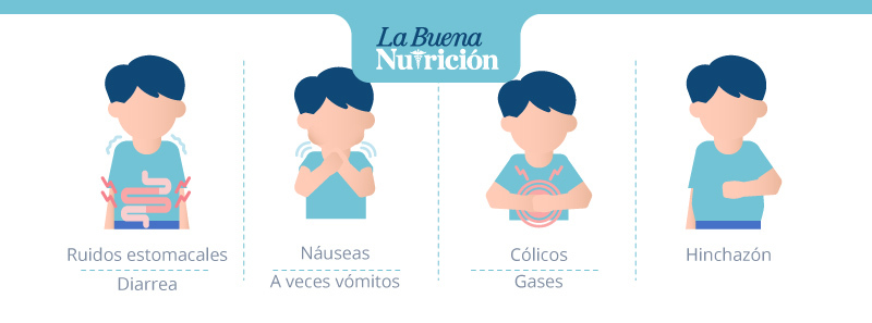 Como consecuencia de que la lactosa no logre descomponerse en el intestino delgado, esta pasa directamente al colon por lo que las bacterias presentes en este conducto la descomponen, lo que ocasiona gases o líquidos. Estos últimos son los que provocan los síntomas característicos de la intolerancia a la lactosa.